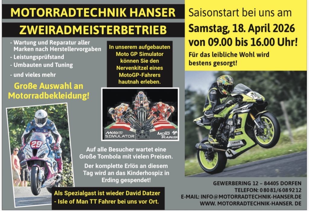 AUSGEZEICHNET Basierend auf 144 Bewertungen Gepostet auf Dominik GTrustindex überprüft, ob die Originalquelle der Bewertung Google ist. Super symphatisch, kompetent einfach ein Fachmann auf seinem Gebiet und auch preislich absolut zu top! War auch mit meinen Jungs zum Rennsimulator fahren und testen bei Ihm, kann ich für jeden nur empfehlen, Spaß pur!Gepostet auf Marlon WTrustindex überprüft, ob die Originalquelle der Bewertung Google ist. Einer der besten motorradwerkstätten die ich kenne ein sehr freundliches TeamGepostet auf Ralf MTrustindex überprüft, ob die Originalquelle der Bewertung Google ist. Super Motorradwerkstatt, freundlich, kompetent, hervorragendes Preis/Leistungsverhältnis, uneingeschränkte WeiterempfehlungGepostet auf Obamoa_wastTrustindex überprüft, ob die Originalquelle der Bewertung Google ist. Super Motorradwerkstatt! Freundlicher Service und faire Preise.Gepostet auf Marcel WTrustindex überprüft, ob die Originalquelle der Bewertung Google ist. Super freundlich, mega kompetent und entgegenkommend! Seit meinem ersten Besuch bin ich nur noch dortGepostet auf Lucas LTrustindex überprüft, ob die Originalquelle der Bewertung Google ist. Beste Werkstatt der WeltGepostet auf Patrick BTrustindex überprüft, ob die Originalquelle der Bewertung Google ist. Sehr sympathisch, schnell, unkompliziert, fairer Preis und professionelle Arbeit.Gepostet auf Sascha FTrustindex überprüft, ob die Originalquelle der Bewertung Google ist. Ich schreibe eher selten Rezensionen, aber hier muss ich jetzt einfach. Bei Motorradtechnik Hanser ist es nicht nur Mopped abgeben, machen lassen und dann wieder abholen. Nein, hier ist zusätzlich der beste Service, den man sich vorstellen kann. Und ich war wirklich kein einfacher Kunde :-). Ich könnte jetzt einen Roman schreiben, lass es aber. Ich sage nur, meine Z900 kommt in keine anderen Hände mehr. Danke an Herr Hanser und sein Team.Gepostet auf Hubert WTrustindex überprüft, ob die Originalquelle der Bewertung Google ist. Diese Werktstatt kann man uneingeschränkt empfehlen. Fachliche Kompetenz verbunden mit absoluter Ehrlichkeit und vernünftigen Preisen. Auch bei schwierigen Problemen werden mit größtem Engagement Lösungen gefunden.Verifiziert von: TrustindexDas verifizierte Trustindex-Abzeichen ist das universelle Symbol des Vertrauens. Nur die besten Unternehmen können das verifizierte Abzeichen erhalten, die eine Bewertungsnote über 4.5 haben, basierend auf Kundenbewertungen der letzten 12 Monate. Mehr erfahren